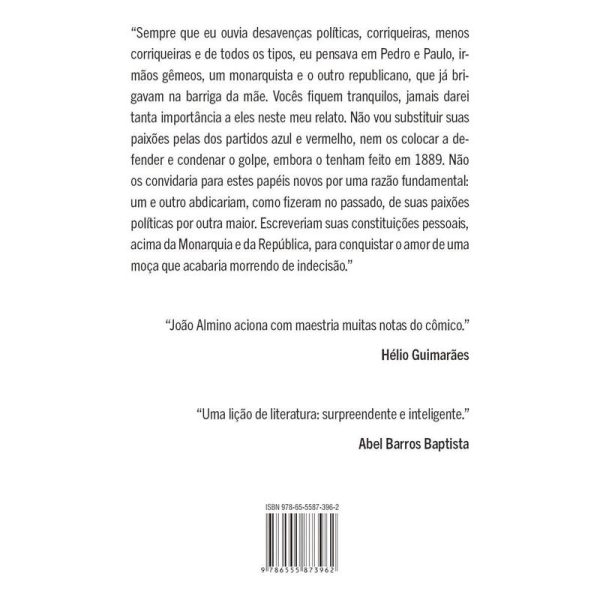 Romance de João Almino resgata o personagem conselheiro Aires, de Machado de Assis, e o transporta para o século XXI. Homem de papel, de João Almino, diplomata e um dos escritores mais importantes da literatura nacional, autor dos romances Enigmas da primavera e Entre facas, algodão, publicados pela Record, é o seu livro mais alegórico. Aqui, o autor evoca Machado de Assis, resgatando o personagem-narrador conselheiro Aires e transportando-o para os dias atuais.Se em Esaú e Jacó, de Machado de Assis, o conselheiro Aires está numa trama sobre dois irmãos completamente opostos, que disputam a mesma mulher e defendem regimes políticos contrários (Monarquia e República), neste Homem de papel ele ganha protagonismo metamorfoseado em livro, do qual consegue dar escapadelas para o mundo real, regido pela ignorância e estupidez. O exemplar que o abriga pertence à jovem diplomata Flor, trigêmia de Hugo e Miguel, que, assim como os gêmeos de Machado de Assis, estão em eterna rixa política. Teria Flor nascido para atrapalhar a simetria? Ou seria um epicentro de equilíbrio na disputa entre os irmãos?O conselheiro se depara com as s sociais e precisa se adaptar à velocidade com que as notícias se multiplicam. Diferente do final do século XIX e início do XX, agora cada notícia cria milhões e milhões de “verdades”, cujas consequências muitas vezes são irreparáveis.Na orelha do livro, Hélio Guimarães, professor da USP, escreve: “Movendo-se entre a farsa, a paródia, a sátira e a tragicomédia, João Almino aciona com maestria muitas notas do cômico. O humor afasta qualquer sugestão de que o passado fosse muito melhor do que o presente. Continua valendo aqui, como em Machado, a convicção de que ciúmes, traições, medo, orgulho, vaidade até mudam de endereço, mas mantêm o frescor do primeiro pé de alface que nossos ancestrais arrancaram da terra.” “João Almino aciona com maestria muitas notas do cômico.” – Hélio Guimarães“Uma lição de literatura: surpreendente e inteligente.” – Abel Barros Baptista