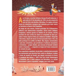 Aos 33 anos, o escritor britânico George Orwell embarcou na noite de 25 de dezembro de 1936, em uma estação de trem de Paris com destino a Barcelona.Os vagões estavam cheios de voluntários europeus que rumavam para lutar contra os fascistas na Guerra Civil Espanhola. Ao longo de seis meses, Orwell participou de treinamentos militares com adolescentes espanhóis, atirou contra soldados franquistas, montou guarda no telhado de um cinema, dormiu enrolado em uma cortina de cabaré na companhia de duas granadas e fumou cigarros feitos por andaluzes humildes. De volta a Barcelona, depois de meses no front passando fome e frio, não pôde participar do conflito em Madri. Dias depois, testemunhou a ação dos comunistas, que prenderam e fuzilaram anarquistas e trotskistas — grupos aliados, que estavam ali lutando também contra o fascismo —, enquanto as tropas de Franco avançavam no restante do país. Essa experiência espanhola, de perceber o autoritarismo presente nos movimentos que deveriam lutar contra as ditaduras, moldou a visão de mundo de Orwell, que depois escreveria os livros A revolução dos bichos e 1984. Este livro inclui Homenagem à Catalunha, que o autor esboçou em Barcelona, e o ensaio Recordando a guerra espanhola, redigido anos mais tarde. Ao longo dos textos, mais de sessenta notas trazem explicações e curiosidades que foram aqui reunidas e sistematizadas pelo jornalista e tradutor Duda Teixeira. Esta edição conta ainda com uma linha do tempo e um glossário, que auxiliam a entender a complexa Guerra Civil Espanhola, precursora da Segunda Guerra Mundial. A palavra, contudo, é sempre do brilhante George Orwell. É ele quem comanda esta aventura.