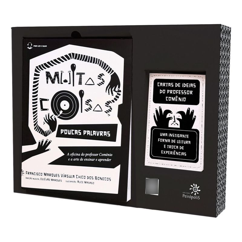 Para o professor que deseja se aprofundar nas ideias de João Amós Comênio e refletir sobre a própria prática a partir das contribuições desse grande educador, considerado o pai da didática e da escola pública, a editora Peirópolis sugere um mergulho em duas obras: a peça radiofônica Muitas coisas, poucas palavras, de autoria de Francisco Marques Vírgula Chico dos Bonecos e as Cartas de Ideias do Professor Comênio, todo mesmo autor, em parceria com Cyrce Andrade. A peça radiofônica e livro cantante apresenta aos leitores-ouvintes o encontro com o professor Comênio e sua arte de ensinar e aprender, encarnada em um criativo diálogo do autor com o educador europeu, cujas ideias são bastante atuais. Além dessa deliciosa conversa, Chico exercita na peça outros gêneros textuais – a poesia, a biografia, a entrevista, a prosa – com a mesma inventividade com que tira de suas maletas os brinquedos milenares e reorganiza os brinquedos invisíveis para criar poesia e encantar. Já as Cartas de ideias compõem um interessante recurso didático para ser usado após a audição da peça, propondo um jogo cooperativo que pode ser realizado entre os professores, as famílias e a comunidade escolar. Nas cartas, além das ideias comenianas, os jogadores enfrentarão, de forma colaborativa, alguns tropeços comuns nas ações educativas, pensando nos passos necessários para que a arte de ensinar e aprender supere as dificuldades do caminho.