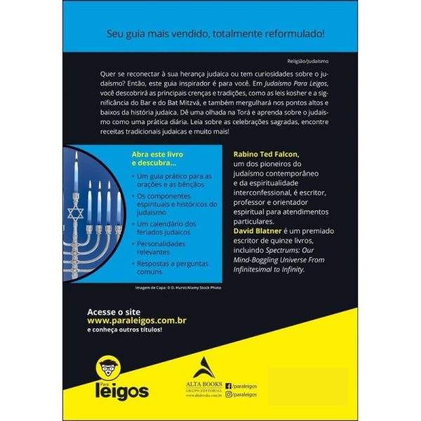 Quer se reconectar à sua herança judaica ou tem curiosidades sobre o judaísmo? Então, este guia inspirador é para você. Em Judaísmo Para Leigos, você descobrirá as principais crenças e tradições, como as leis kosher e a significância do Bar e do Bat Mitzvá, e também mergulhará nos pontos altos e baixos da história judaica. Dê uma olhada na Torá e aprenda sobre o judaísmo como uma prática diária. Leia sobre as celebrações sagradas, encontre receitas tradicionais judaicas e muito mais! Rabino Ted Falcon é um dos pioneiros do judaísmo contemporâneo e da espiritualidade interconfessional, é escritor, professor e orientador espiritual para atendimentos particulares. David Blatner é um premiado escritor de quinze livros, incluindo Spectrums: Our Mind-Boggling Universe From Infinitesimal to Infinity.