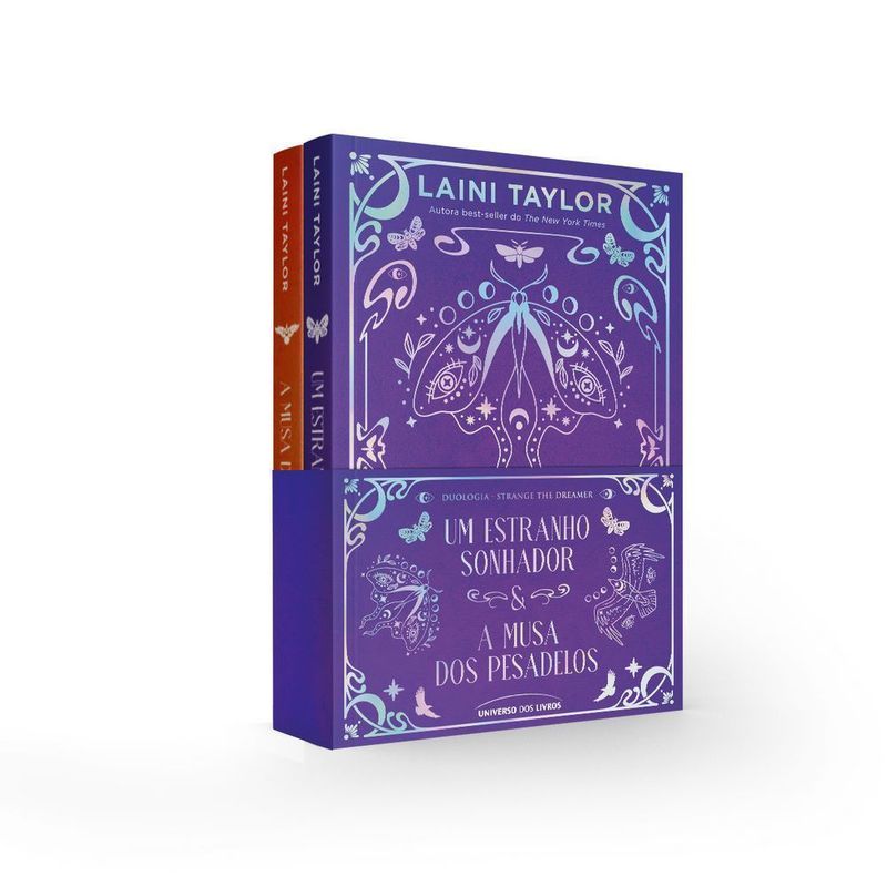 Aventure-se em um mundo mítico de horror e maravilha, mariposas e pesadelos, amor e massacre – a duologia best-seller de Laini TaylorLivro 1 – Um Estranho SonhadorO sonho escolhe o sonhador, e não o contrário – e Lazlo Estranho, órfão de guerra e bibliotecário júnior, sempre temeu que seu sonho tivesse escolhido mal, já que, desde criança, ele era obcecado pela mítica cidade perdida de Lamento e seus mistérios: o que aconteceu lá duzentos anos antes, algo que a separou do restante do mundo? Que tipo de deuses existiam lá e foram mortos pelo Matador de Deuses? Quem é a deusa de pele azul que aparece em seus sonhos?As respostas a esses e outros mistérios estão neste romance de tirar o fôlego – indicado para sonhadores dispostos a se aventurar em mundos mágicos, repletos de personagens marcantes e seus conflitos emocionais.Livro 2 – A Musa dos PesadelosEnquanto humanos e deuses temem uma deusa de mente sombria que quer se vingar das pessoas da cidade de Lamento, um novo inimigo surge e ressuscita outros mistérios: de onde vieram os deuses e por quê? O que foi feito com milhares de crianças nascidas no berçário da cidadela? Após o surpreendente final do primeiro volume da duologia, Sarai e Lazlo vão descobrir que apenas a mais terrível necessidade pode nos mostrar nossas próprias profundezas – e o Estranho Sonhador e a Musa dos Pesadelos ainda não descobriram do que são capazes.