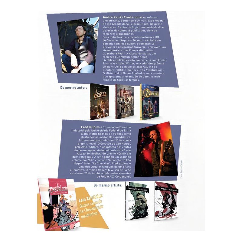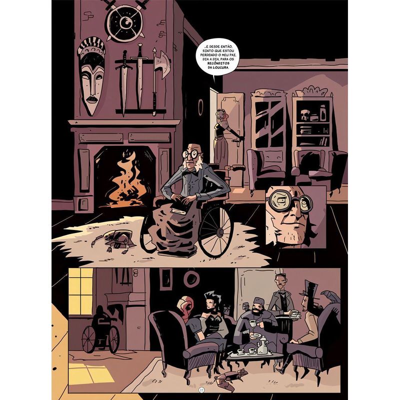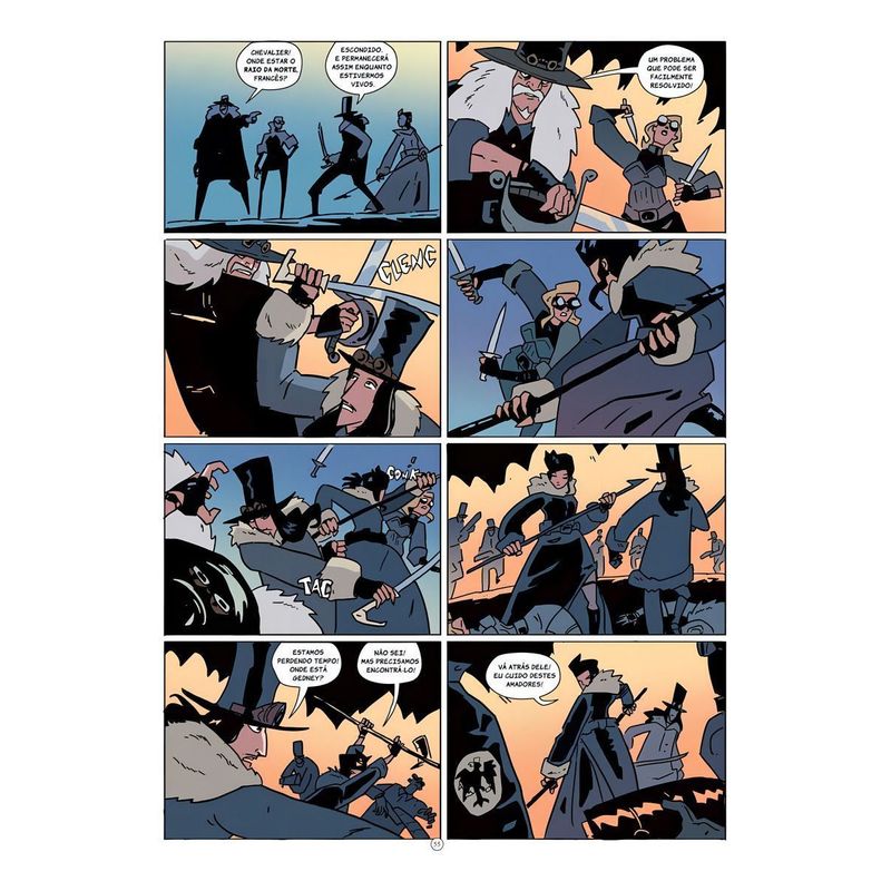 Os maiores heróis da França enfrentam o terrível Justiceiro da Paz para salvar o mundo! Em uma época em que a França comanda a Revolução Industrial, Le Chevalier e Persa, seu fiel escudeiro, precisam superar suas divergências com antigos inimigos para enfrentar a chantagem de um maligno adversário. As nações do mundo estendem seus estandartes de batalha quando navios de guerra são atacados e acusações de traição se tornam arautos de uma guerra que se avizinha. Irene Adler, a mais famosa ladra do Comitê, recruta os agentes franceses para uma última e derradeira tentativa de capturar o verdadeiro inimigo e evitar a guerra. Mas nem tudo é o que parece. A investigação prossegue para um cenário aterrador e, nos confins da Antártida, os aventureiros são obrigados a seguir os passos de uma antiga expedição da Universidade Miskatônica. No deserto críptico de gelo e morte, eles precisam encarar seus piores pesadelos nas Montanhas da Loucura. Inspirado em escritos de H.P. Lovecraft (Nas Montanhas da Loucura), Edgar Alan Poe (A Narrativa de Arthur Gordon Pym) e Júlio Verne (A Esfinge dos Gelos), este volume retrata as aventuras dos maiores heróis de um mundo steampunk vitoriano em uma narrativa repleta de ação e mistério.