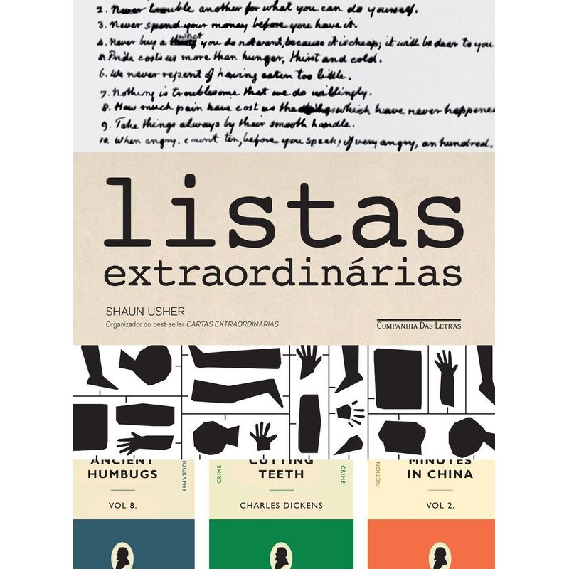 Depois do estrondoso sucesso de Cartas extraordinárias, Shaun Usher continua seu minucioso trabalho de pesquisa com esta seleção de 125 listas inesquecíveis feitas por autores, cientistas, empresários, artistas e outras figuras de diversos períodos da história – como Albert Einstein, Charles Darwin, Francis Ford Coppola, Galileu Galilei, Kurt Cobain, Marylin Monroe e Pablo Picasso. Ricamente ilustrada por fotos e fac-símiles, esta espirituosa e diversificada coletânea contextualiza cada uma das listas e transporta o leitor para o mundo desses personagens. São listas de compras, afazeres, sonhos, itens favoritos e outros. Um material detalhado que mostra as particularidades de cada um para organizar o mundo à sua volta.