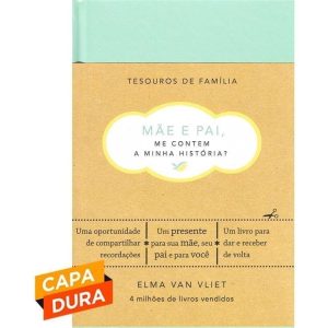 A coleção Tesouros de Família já vendeu 4 milhões de livros no mundo. Um presente para dar e receber de volta. Elma van Vliet já encantou milhares de pessoas ao redor do mundo com livros que nos ajudam a resgatar preciosas lembranças de família. Agora, em Mãe e pai, me contem a minha história?, ela oferece aos pais um espaço para registrar os acontecimentos mais marcantes da vida de seus filhos, desde o início da gestação até os 12 anos. Trazendo perguntas específicas para serem respondidas pelo pai e pela mãe – e outras tantas voltadas para os dois – este baú de recordações vai levar a família a uma deliciosa viagem de volta ao passado. O tempo passa rápido demais e as memórias da infância são muito especiais para serem esquecidas. Com espaço para escrever, colar fotografias e incluir o que mais desejar, este livro é um presente valioso. Afinal, os verdadeiros tesouros de família são as lembranças que compartilhamos com as pessoas que amamos. Normalmente não devolvemos os presentes que ganhamos, mas este livro é uma exceção à regra. A intenção é que seus pais o preencham e depois o devolvam a você.