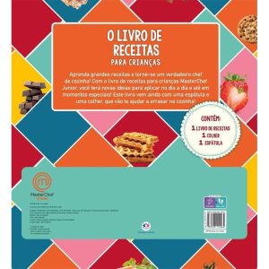 Aprenda grandes receitas e torne-se um verdadeiro chef de cozinha! Com o Livro de Receitas Para Crianças MasterChef Júnior, você terá novas ideias para aplicar no dia a dia e até em momentos especiais! Este livro vem ainda com uma espátula e uma colher de silicone, que vão te ajudar a arrasar na cozinha