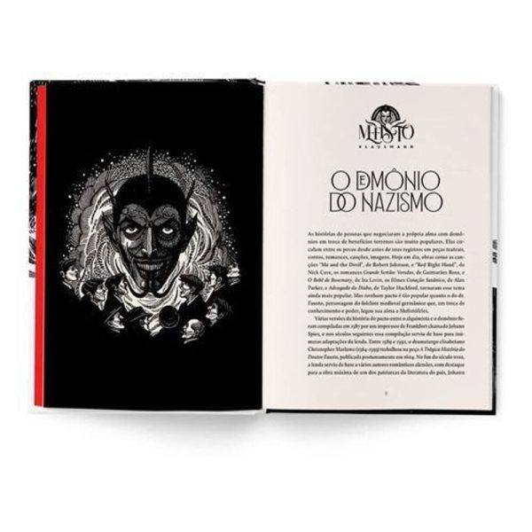 Uma história assustadora e atual. Um grito exilado diante dos demônios nazistas As histórias de pessoas que negociaram a própria alma com demônios em troca de benefícios terrenos são muito populares. Elas circulam entre os povos desde antes de seus registros em peças teatrais, contos, romances, canções, imagens. Mas nenhum pacto é tão popular quanto o do dr. Fausto, personagem do folclore medieval germânico que, em troca de conhecimento e poder, legou sua alma a Mefistófeles. Essa lenda serviu de base para a obra máxima de um dos patriarcas da literatura do país, Johann Wolfgang von Goethe, autor da peça Fausto. Em 1936, o alemão Klaus Mann publicou Mefisto, romance centrado em um pacto fáustico diretamente ligado à obra de Goethe. No livro é contada a história de Hendrik Höfgen, ambicioso ator que abdica de seus ideais revolucionários em troca da ascensão social meteórica numa carreira artística cujo ápice, não por acaso, é uma encenação do Fausto de Goethe. Na peça, Höfgen interpreta Mefistófeles, enquanto em sua vida ele age como Fausto. Porém, o demônio de Höfgen não é uma entidade fantástica, e sim um demônio concreto: o Partido Nazista. O romance foi escrito quando Klaus se encontrava exilado na Holanda, durante a ascensão do Terceiro Reich, um pouco antes da eclosão da Segunda Guerra Mundial, em 1939. Seu protagonista, assim como quase todos os personagens do livro, é inspirado em pessoas reais da época, um dos motivos pelo qual o livro foi censurado. Em 1968, o Tribunal Federal de Justiça alemão proibiu o romance ao acatar o pedido do filho adotivo do ator Gustaf Gründgens, que reconhecera seu pai, no protagonista da obra. Em 1971, porém, a censura foi derrubada. A edição especial da DarkSide® Books, organizada por Paulo Raviere, conta com uma tradução criteriosa feita diretamente do alemão por Claudia Abeling e com belíssimas xilogravuras criadas por Ramon Rodrigues especialmente para o livro. No posfácio assinado por Claudia Dornbusch, a pesquisadora afirma: “Percebemos a fina ironia ao mostrar o colaboracionismo de várias esferas da sociedade: chefes da polícia secreta, editores, diplomatas, divas do cinema, professores universitários e banqueiros judeus”. Mefisto tem muitas semelhanças com nossos tempos, o que torna sua leitura ainda mais urgente e assustadora. Vários países e governantes da atualidade parecem mimetizar muitos dos atos da Alemanha nazista descritos no livro. Tanto nos anos 1930 como nos tempos atuais, o ambiente é sufocante e opressor, e esta obra magistral de Klaus Mann nos mostra como um pacto com um demônio sempre anda à espreita, buscando por aqueles que topam as propostas mais inomináveis, desde que possam tirar vantagens.