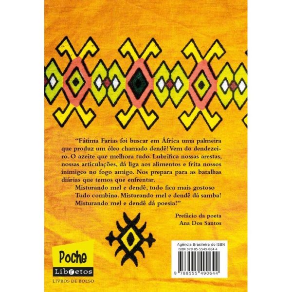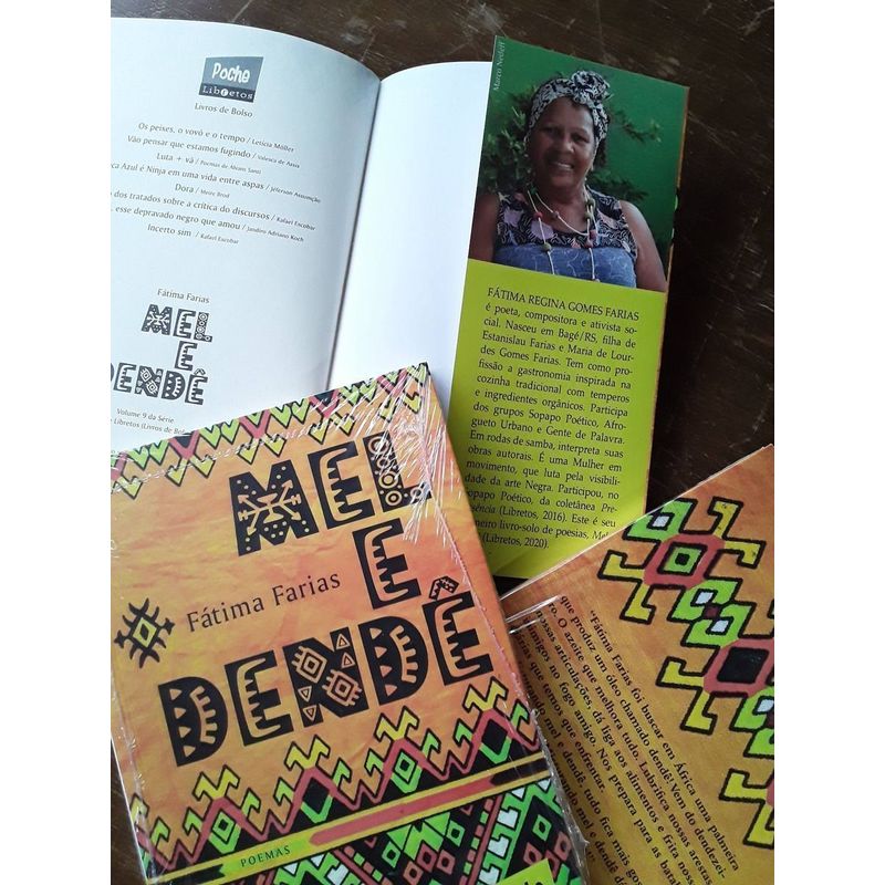 A poeta, compositora e ativista social Fátima Farias lança seu primeiro livro solo. Em Mel e Dendê, a autora reúne poemas e alguns sambas, talento que herda de seu pai, o também compositor e poeta Estanislau Farias. A poeta bebeu nas fontes da poesia brasileira até que encontrou uma roda de poesia negra e, a partir daí, firmou sua própria identidade. De múltiplos talentos, também é uma cozinheira de mão cheia. Na busca de suas origens, luta por um mundo melhor. Seu trabalho fala mulheres livres e de sua luta para sobreviver diariamente. De volta em volta, Fátima também chegou ao Slam. E o ritmo contemporâneo aparece em sua poética. Foi buscar também em suas paixões o que chamamos de amor romântico. E escreve igualmente sobre o amor incondicional. O amor fraternal. O amor às causas. O amor em sua essência. E o amor erótico? Esse pega fogo!
