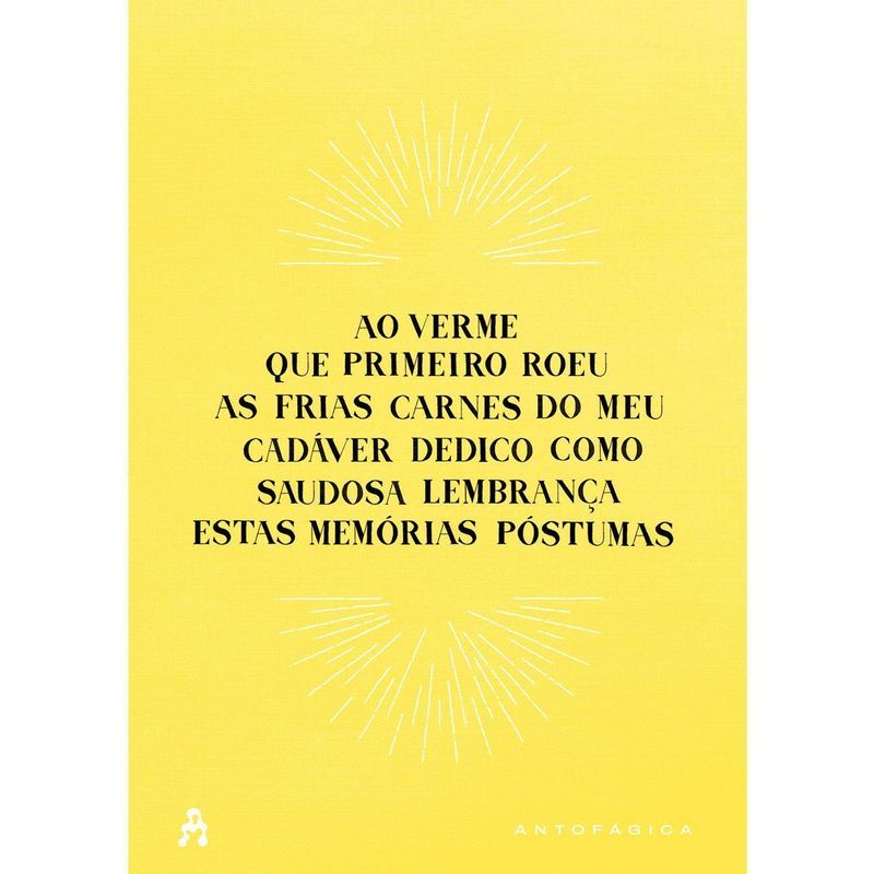Brás Cubas está morto. Mas isso não o impede de relatar em seu livro os acontecimentos de sua existência e de sua grande ideia fixa: lançar o Emplasto Brás Cubas. Deus te livre, leitor, de uma ideia fixa. O medicamento anti-hipocondríaco torna-se o estopim de uma série de lembranças, reminiscências e digressões da vida do defunto autor.A edição da Antofágica conta com 88 ilustrações de um dos expoentes da arte no Brasil, Candido Portinari, que chegam pela primeira vez ao grande público e dão uma nova camada de interpretação ao clássico.O livro traz ainda com notas inéditas e posfácio de Rogério Fernandes dos Santos, especialista na obra machadiana, um perfil do autor escrito por Ale Santos (@savagefiction), além de uma introdução de Isabela Lubrano, do canal Ler Antes de Morrer.