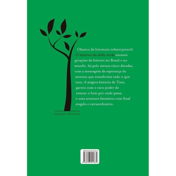 O menino do dedo verde encanta gerações de leitores no Brasil e no mundo, há pelo menos cinco décadas, com a mensagem de esperança do menino com raro poder de semear o bem por onde passa. Agora a mágica história de Tistu ganha edição especial – capa dura e novas ilustrações de Walter Lara – para continuar encantando todos com sua aventura fantástica e seu final singelo e extraordinário.