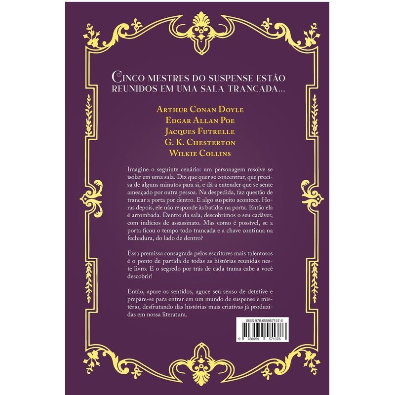 Cinco mestres do suspense estão reunidos em uma sala trancada… Imagine o seguinte cenário: um personagem resolve se isolar em uma sala. Diz que quer se concentrar, que precisa de alguns minutos para si, e dá a entender que se sente ameaçado por outra pessoa. Na despedida, faz questão de trancar a porta por dentro. E algo suspeito acontece. Horas depois, ele não responde às batidas na porta. Então ela é arrombada. Dentro da sala, descobrimos o seu cadáver, com indícios de assassinato. Mas como é possível, se a porta ficou o tempo todo trancada e a chave continua na fechadura, do lado de dentro? Essa premissa consagrada pelos escritores mais talentosos é o ponto de partida de todas as histórias reunidas neste livro. E o segredo por trás de cada trama cabe a você descobrir! Então, apure os sentidos, aguce seu senso de detetive e prepare-se para entrar em um mundo de suspense e mistério, desfrutando das histórias mais criativas publicadas em todos os tempos. Com curadoria de Victor Bonini!