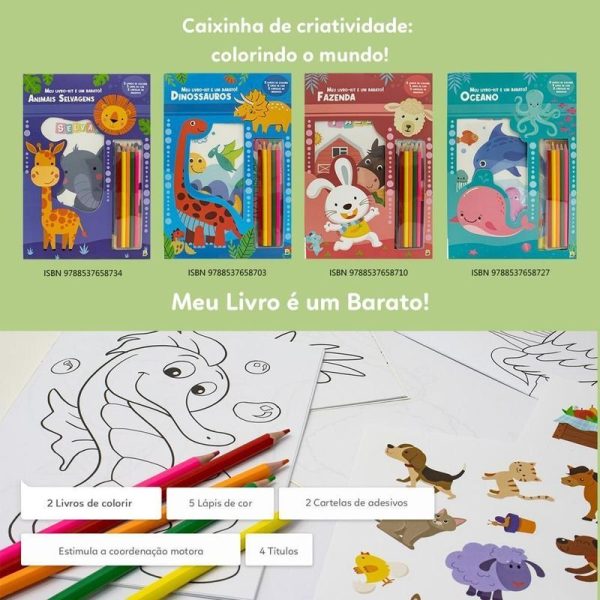 Envolva a criatividade da criança neste adorável livro-kit para relaxar e se inspirar com lindas ilustrações de animais da fazenda. Divirta-se colando adesivos e colorindo!