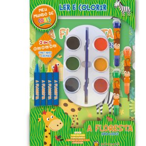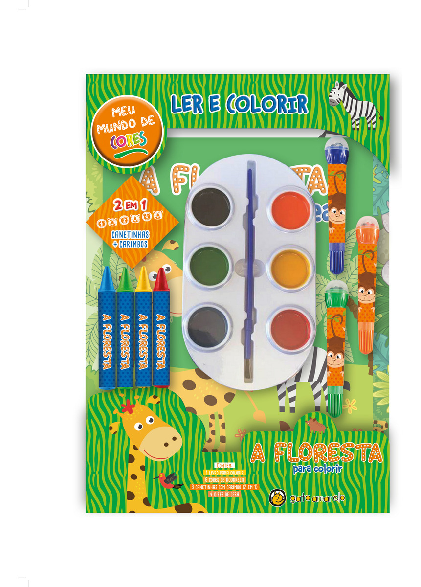 Incrível kit para colorir de animais da floresta. Para estimular a criatividade artística das crianças. Com giz de cera, aquarela, carimbos, canetinhas e muito mais! 3 a 5 anos.