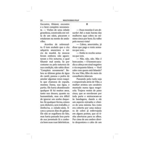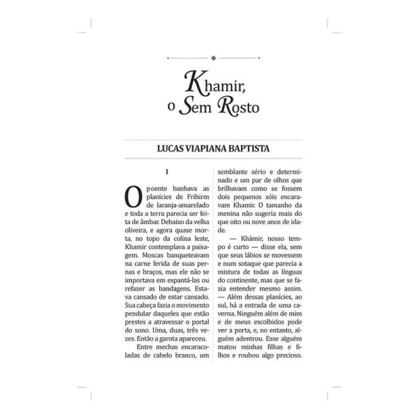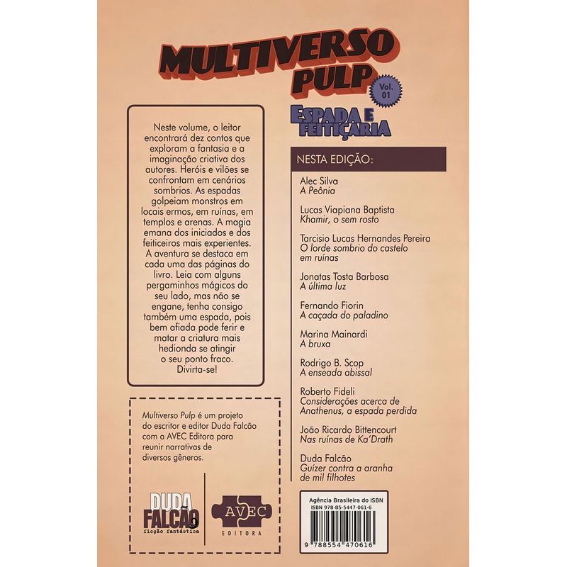 Neste volume, o leitor encontrará 10 contos que exploram a fantasia e a imaginação criativa dos autores. Heróis e vilões se confrontam em cenários sombrios. Espadas golpeiam monstros em locais ermos, em ruínas, templos e arenas. A magia emana dos iniciados e de feiticeiros mais experientes. A aventura se destaca em cada uma das páginas do livro. Leia com alguns pergaminhos mágicos do seu lado, mas não se engane, tenha consigo também uma espada, pois bem afiada pode ferir a criatura mais hedionda se atingir seu ponto fraco. Divirta-se!