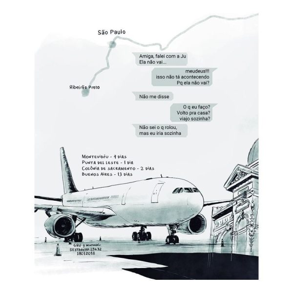 Viajando sozinha pela primeira vez, Letícia tenta processar o possível fim de um relacionamento ao escrever sobre a vida de desconhecidos que cruzam seu caminho.