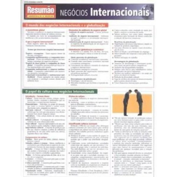 Este Resumão traz os conceitos básicos para quem estuda ou trabalha na área do comércio internacional. Escrito e revisado por especialistas, seu conteúdo está organizado de maneira que você possa encontrar rapidamente as respostas para as suas perguntas e os temas de seu interesse: a globalização, o papel da cultura nos negócios internacionais, os sistemas econômicos, as forças políticas e a legislação, os mercados financeiros internacionais e o mercado de câmbio, o sistema monetário internacional, a monitoria do trabalho e as oportunidades são alguns dos temas abordados. Direto ao ponto, fácil de guardar, ótimo para relembrar e aprender.