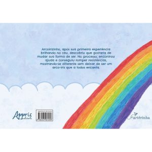 Arcoirizinho, após sua primeira experiência brilhando no céu, descobriu que gostaria de mudar sua forma de ser. No processo, encontrou ajuda e conseguiu romper resistências, mostrando-se diferente sem deixar de ser um arco-íris que a todos encanta.