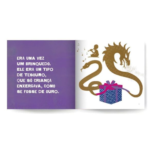 Criança adora ganhar presente. Se é brinquedo, então, a alegria é maior ainda. Mas o que fazer com tantas caixas sem graça que sobram? O brinquedo novo reserva uma grande revelação. Ou seriam muitas, infinitas revelações? Com cor especial em dourado, o livro simboliza o maior presente de todos, que pode transformar essas “caixas sem graça” em histórias incríveis e brinquedos muito especiais!