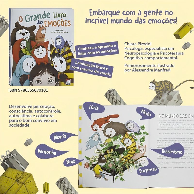 Você sabe o que são emoções? Aqui, nestas páginas, tentarei explicá-las e ensinarei sobre esses amiguinhos especiais. Todos têm sua própria personalidade, é bom que se diga, mas você só precisa conhecê-los, e como eles te avisam da chegada deles, e com o tempo, como discipliná-los e mantê-los sob controle! Aguente firme: estamos prestes a entrar no mundo das emoções! Sobre a Autora: Chiara Piroddi é psicóloga italiana e especialista em neuropsicologia especializada em psicoterapia cognitivo-desenvolvimental. Se formou em psicologia na Universidade de Pavia em 2007 e continuou na mesma instituição como professora de psicologia fisiológica e instrutora de exercícios práticos em neuropsicologia. Ela fez seu treinamento no campo do hospital Niguarda Ca’Granda, em Milão, onde trabalha desde 2008, adquirindo experiência clínica com crianças de todas as idades com graves deficiências mentais, psicológicas e de aprendizagem. Atualmente, Piroddi tem consultório particular como psicoterapeuta para adultos, pais e adolescentes.