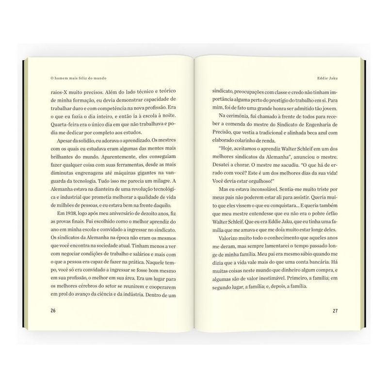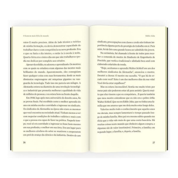 Em um inspirador livro de memórias, o sobrevivente do Holocausto Eddie Jaku reflete acerca de suas experiências e fala abertamente sobre o poder do amor, da gratidão e da solidariedade. Mais do que judeu, Eddie Jaku sempre se considerou alemão. Ele sentia orgulho do seu país natal. Mas, em novembro de 1938, tudo mudou: dez nazistas invadiram sua casa e o espancaram quase até a morte. Naquela noite, que ficou conhecida para sempre na história como a Noite dos Cristais, Eddie foi preso e levado a um campo de concentração. Dali em diante, por sete anos de sua vida, enfrentou diariamente horrores que só quem viveu o Holocausto é capaz de imaginar, nos campos de Buchenwald e Auschwitz e, por fim, na Marcha da Morte nazista. Perdeu familiares, amigos e, sobretudo, o amor que tinha por seu país. Mas Eddie sobreviveu. E depois das provações que sofreu, jurou sorrir todos os dias que ainda restavam da sua vida. Em uma linda homenagem àqueles que não resistiram, Eddie Jaku conta sua história, compartilha sua sabedoria e leva hoje a melhor vida possível, pois acredita ser “o homem mais feliz do mundo”. Publicada pouco depois do centenário de Eddie, esta obra poderosa e emocionante é uma lição de esperança que nos mostra que, mesmo após situações tenebrosas, ainda é possível ser feliz.