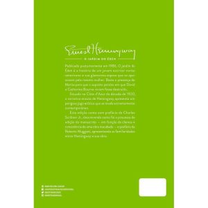 “Publicado postumamente em 1986, O jardim do Éden, do Nobel de Literatura Ernest Hemingway, traça a vida de um jovem escritor americano e sua glamorosa esposa que se apaixonam pela mesma mulher. A concepção de O jardim do Éden começou em 1946, contemporaneamente a outros romances lançados em vida por Hemingway, como O velho e o mareParis é uma festa. Mas só chegou às livrarias 25 anos após sua morte. Considerado um divisor de águas na percepção de leitores e estudiosos do autor norte-americano, o romance é único entre as obras de Hemingway. Sua exploração de papéis e identidades de gênero, de práticas sexuais e sua expressão artística desafiaram as noções tradicionais que os fãs tinham de Hemingway. Apesar de não ser um romance autobiográfico, muitas semelhanças envolvem o autor e seu protagonista. David Bourne é um jovem escritor norte-americano em ascensão, ávido por escrever a próxima história. Recém-casado com a glamorosa Catherine, viajam em lua de mel para a Côte d’Azur na década de 1920. Até que um dia conhecem Marita e, a partir desse encontro, a vida dos três ganha um novo rumo. David e Catherine se sentem atraídos por Marita, e o perigoso jogo erótico do qual participam quando se apaixonam pela mesma mulher enfraquece aos poucos seu relacionamento. Em meio a esse triângulo amoroso, Hemingway nos dá excelentes pistas do que é ser escritor por meio das lutas intelectuais de David – quando tenta descrever em pequenas histórias sua viagem pela África com o pai, na infância, caçando elefantes, pondo em espera a narrativa principal que trata das suas viagens com Catherine. Ele também revela sua vulnerabilidade, escondida atrás de sua imagem pública, do alto preço que os artistas precisam pagar para seguir sua vocação. Escrito no período pós-guerra e ambientado entre drinques e tardes ao sol, trabalho literário e diversão, O jardim do Éden consiste em um notável exercício de liberação e contém a personagem feminina mais impressionante do autor. Esta edição conta com prefácio de Charles Scribner Jr., descrevendo como foi o processo de edição do manuscrito – em função da clareza e consistência de uma obra inacabada – e posfácio de Roberto Muggiati, apresentando as familiaridades entre Hemingway e sua obra. “Uma narrativa enxuta e sensual… tensa, chique e estranhamente contemporânea, O jardim do Éden representa o Hemingway vintage, o mestre fazendo o que ninguém fazia melhor.” – R. Z. Sheppard, Time “