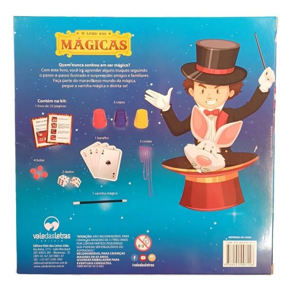 Quem nunca sonhou em ser mágico? Com este livro, você irá aprender alguns truques seguindo o passo-a-passo ilustrado e surpreender amigos e familiares. Faça parte fo maravilhos mundo da mágica, pgue a varinha mágica e divirta-se! Inclui 01 Livro de Instruções; 01 Varinha Mágica; 01 Baralho; 02 Dados; 04 Bolinhas; 03 Copinhos; 03 Cordas. Idade A partir de 6 anos Páginas: 32 Dimensões: 23 X 23 X 7 cm Autora: Paulo H. Cecconi ISBN: 978-85-4100-714-6