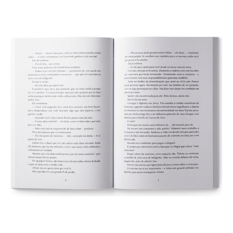 O amor não é cego, apenas um pouco difícil de ver Sadie Montgomery nunca imaginou o que estava por vir… Em um minuto, ela está celebrando sua maior conquista ao se tornar finalista do concurso anual da North American Portrait Society. No outro, está deitada em um leito de hospital com um diagnóstico de prosopagnosia, popularmente conhecida como “cegueira facial”. Imagine que você está lendo um livro de cabeça para baixo em um idioma desconhecido. Pois é, é assim com que se parece a nova realidade de Sadie. Todo rosto que encara parece um quebra-cabeça desconexo e irreconhecível. Apesar disso, ela tem apenas algumas semanas para pintar o melhor retrato de toda a sua vida e ganhar o concurso. Obstinada a conseguir o que deseja, Sadie fará de tudo para reverter sua condição e voltar a pintar, mas ninguém sabe quando ou se isso vai de fato acontecer. Enquanto luta para lidar com a cegueira repentina, ser uma pintora premiada, resolver alguns dramas familiares e cuidar do seu cachorro, o Amendoim, entram em cena dois homens em sua vida, ambos lutando para chamar sua atenção. Um é o veterinário bonitão de seu cachorrinho – que pode ou não ser o noivo de Sadie. O outro é um vizinho charmoso que usa um blusão estiloso e anda de Vespa – e de quem ela parece não conseguir se afastar. Todo esse turbilhão de sentimentos, aliás, não poderia ter um timing pior. Se ao menos sua vida estivesse um pouco mais resolvida, Sadie seria capaz de encontrar o próprio caminho, mas, neste momento, ver as coisas com clareza parece uma missão impossível. Porque a verdade é que ver o mundo de forma diferente tem suas vantagens. E talvez a maneira certa de ver seja sempre com o coração.
