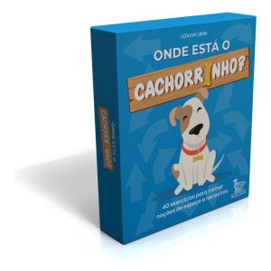 Neste livro-caixinha® estão 40 cartas, divididas em dois grupos: 20 cartas apresentam imagens de um cachorro em diversas posições, e as outras 20 têm frases relativas a essas situações. O objetivo é formar pares, associando a imagem com o lugar informado pelo texto. Por exemplo, se a criança escolher uma carta com a frase “O cachorrinho está dentro da caixa de papelão”, ela deverá procurar a imagem correspondente. Com as atividades desta obra, as crianças desenvolverão orientação espacial, lateralidade e raciocínio lógico.