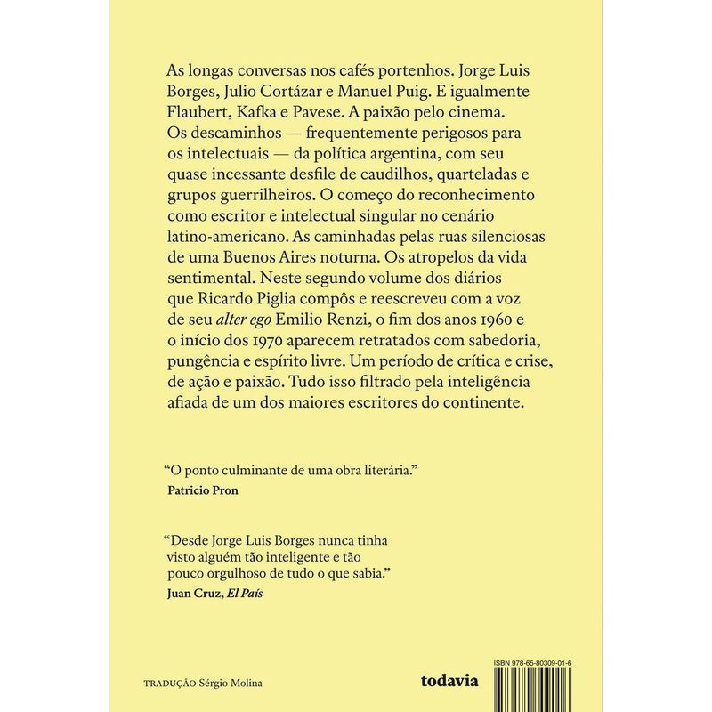 E ainda aparecem as viagens, a vida íntima e amorosa, a Argentina daqueles anos convulsivos: a morte de Perón, o surgimento dos grupos guerrilheiros, o golpe militar que esfacelaria o mundo intelectual de Buenos Aires.