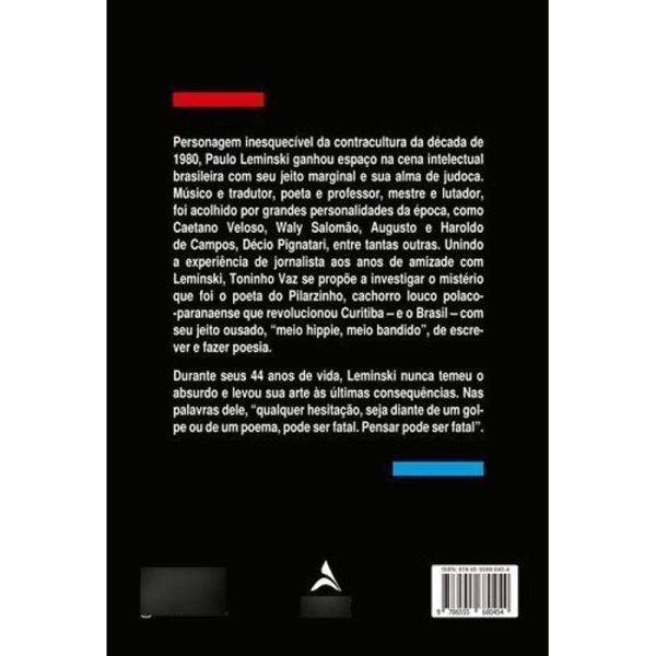 Acompanha um pôster, imagens meramente ilustrativas. Promoção válida enquanto durarem os estoques. Personagem inesquecível da contracultura da década de 1980, Paulo Leminski ganhou espaço na cena intelectual brasileira com seu jeito marginal e sua alma de judoca. Músico e tradutor, poeta e professor, mestre e lutador, foi acolhido por grandes personalidades da época, como Caetano Veloso, Waly Salomão, Augusto e Haroldo de Campos, Décio Pignatari, entre tantas outras. Durante seus 44 anos de vida, Leminski nunca temeu o absurdo e levou sua arte às últimas consequências. Nas palavras dele, “qualquer hesitação, seja diante de um golpe ou de um poema, pode ser fatal. Pensar pode ser fatal”. Unindo a experiência de jornalista aos anos de amizade com Leminski, nesse livro Toninho Vaz se propõe a investigar o mistério que foi o poeta do Pilarzinho, cachorro louco polaco-paranaense que revolucionou Curitiba – e o Brasil – com seu jeito ousado, “meio hippie, meio bandido”, de escrever e fazer poesia. A edição traz um caderno de fotos de Leminski, seus amigos e familiares e um capítulo dedicado a revelação do filho desconhecido, Lucky, agora Paulo Leminski Neto. “Após um ano de pesquisas e 81 entrevistas realizadas com parentes, parceiros, alunos, ex-mulheres, professores, amigos e até desafetos, foi possível reunir histórias, escritos, poemas, fotos inéditas, rascunhos de textos inacabados e muitas pegadas espalhadas pelas três cidades onde o poeta viveu: Curitiba, Rio de Janeiro e São Paulo. O resultado está aqui na medida das minhas pretensões: o retrato de um poeta brasileiro sem disfarces, o ex-estranho Paulo Leminski.” Toninho Vaz