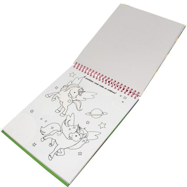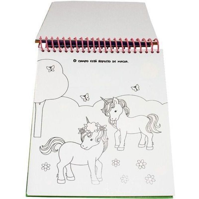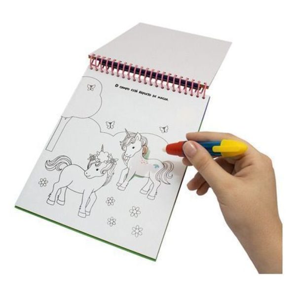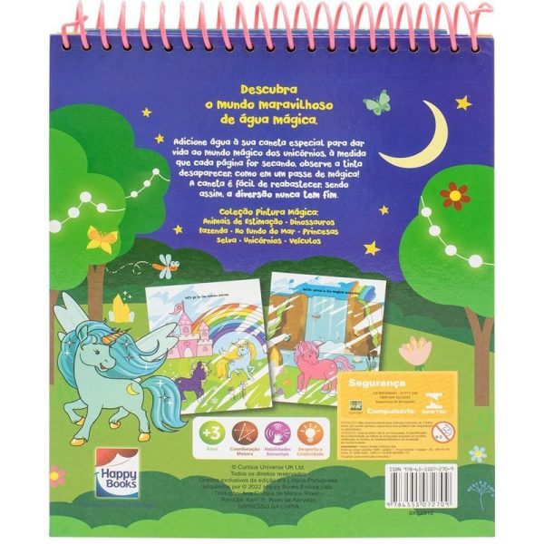 Descubra o mundo maravilhoso de água mágica. Adicione água à sua caneta especial para dar vida ao mundo mágico dos unicórnios, à medida que cada página for secando, observe a tinta desaparecer, como em um passe de mágica! A caneta é fácil de reabastecer, sendo assim, a diversão nunca tem fim.