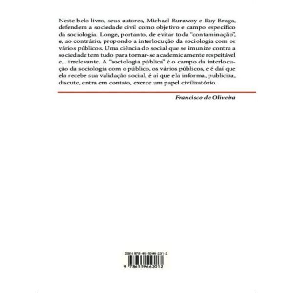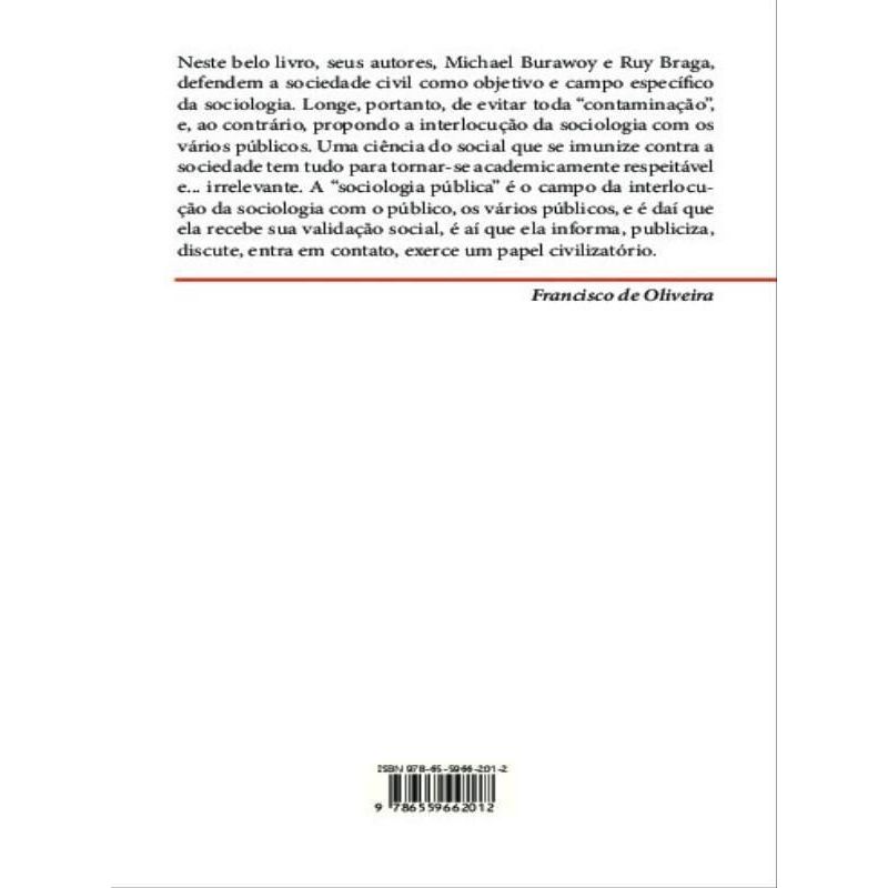 Por uma sociologia pública, de Michael Burawoy e Ruy Braga, 2ª ed.Esta é a segunda edição do livro Por uma sociologia pública, que a Alameda tem a honra de republicar. Trata-se de um livro fundamental para pensar os limites e potências da sociologia em geral e da sociologia pública em particular.Michael Burawoy e Ruy Braga, nos ensaios aqui reunidos, demonstram um compromisso profissional e social com os sentidos do trabalho de fazer e ensinar sociologia. Mais que isso, apresentam questões de princípios e métodos que devem e podem fazer parte do repertório de todo pesquisador da área de ciências humanas.A primeira edição do livro, de 2009, ocorreu quando ainda vivíamos os primeiros efeitos da crise do capital aberta um ano antes. O mundo e o Brasil passaram, então, por ebulições políticas, algumas de caráter democrático, outras, reacionárias. Foram tempos de conflito e de luta, em que a pauta da sociologia pública se fez necessária e praticada por inúmeros intelectuais da área, muitos dos quais não tinham essa perspectiva como uma urgência, nem adotavam esta definição.O tempo em que estamos agora, no entanto, ainda não permite dizer que esses conflitos estão superados, pelo contrário, o que torna ainda mais urgente retomarmos o debate, pois a sociologia pública mostrou-se um ferramental essencial para o enfrentamento do autoritarismo presente na prática e na teoria política da extrema direita em ascensão.O leitor deste livro facilmente reconhecerá a pertinência e, sobretudo, a permanência das questões e proposições aqui colocadas, sem que seja necessário nos estendermos por aqui. Ainda assim, recomendo fortemente a releitura do prefácio que Francisco Oliveira escreveu para este livro. Oliveira destaca, entre outros aspectos, o uso não ortodoxo do marxismo por Burawoy e Braga, que rejeitam o dogmatismo sem se desfazerem dos alicerces que permitem olhar para a sociologia e para a sociedade numa perspectiva crítica e construtiva.Trata-se, portanto, de uma obra fundamental, que, oxalá, ganhará com este relançamento uma nova geração de leitores não só entre os sociólogos, mas também entre todos os que acreditam no trabalho intelectual como um instrumento de transformação da sociedade a caminho de tempos mais igualitários e democráticos.Haroldo Ceravolo SerezaNeste belo livro, Michael Burawoy e Ruy Braga defendem a sociedade civil como objetivo e campo específico da sociologia. Longe, portanto, de evitar toda “contaminação”, e, ao contrário, propondo a interlocução da sociologia com os vários públicos. Uma ciência do social que se imunize contra a sociedade tem tudo para tornar-se academicamente respeitável e… irrelevante. A “sociologia pública” é o campo da interlocução da sociologia com o público, os vários públicos, e é daí que ela recebe sua validação social, é aí que ela informa, publiciza, discute, entra em contato, exerce um papel civilizatório.Francisco de OliveiraSOBRE OS AUTORES: Michael Burawoy é professor do Departamento de Sociologia da Universidade da Califórnia em Berkeley. É autor de Marxismo sociológico, publicado pela Alameda, e de Manufacturing consent: changes in the labor process under monopoly capitalism (University of Chicago, 1979). Ruy Braga é professor do Departamento de Sociologia da Universidade de São Paulo e secretário de redação da revista Outubro. É autor, entre outros livros, de A angústia do precariado(Boitempo) e A pulsão plebeia (Alameda).
