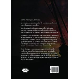 Martin avança pelo Além-mar. A revelação do que existe além do horizonte da vila está agora diante dos seus olhos. Na vila, uma misteriosa doença espalha-se fora de controle, enquanto violentos conflitos opõem fanáticos defensores do regime Ancião e seguidores do novo Zelador. Em meio ao caos, Maya toma para si uma tarefa que parece impossível: entrar na lendária Biblioteca Anciã e roubar o original dos Livros da Criação. Ela logo descobre, porém, que também sofre do estranho mal que assola a cidade e percebe que pouco tempo lhe resta para completar uma missão que desconfia ser cada vez mais crucial. Neste livro que encerra a saga do garoto apaixonado por livros, vemos Martin completar a sua jornada de amadurecimento ao percorrer uma trajetória pontuada por coragem, sofrimento e perdas. No final, aprendemos junto com ele que o caminho correto nem sempre é o mais fácil de ser trilhado.