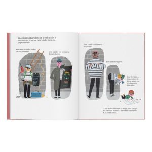 O novo lançamento do autor e ilustrador três vezes vencedor do Prêmio Jabuti. Havia cinco ladrões. Eles eram os piores ladrões da cidade. Na verdade, havia quatro… e o sobrinho deles, o Osvaldo, que era muuuito distraído e passava o dia todo desenhando. Bem, pelo menos ele poderia ajudá-los fazendo o mapa para o assalto ao banco, não é mesmo? Mas o mapa acaba ficando um pouquinho diferente… E enquanto tentam encontrar o caminho pela rede de túneis abaixo da cidade, um a um, os quatro ladrões vão indo parar em lugares inesperados e a empreitada vai de mal a pior. É… Talvez Osvaldo realmente não seja muito bom nisso de ser um ladrão, mas quem sabe ele não descobre algum talento especial até o final da história? Em uma narrativa original e engraçada, Guilherme Karsten nos mostra que, às vezes, as nossas fraquezas podem se mostrar verdadeiros talentos.