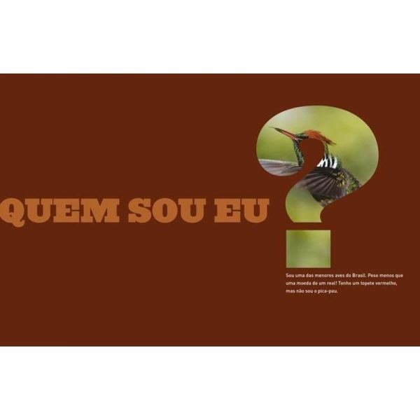 Todos adoram adivinhas porque elas são muito divertidas! Além disso, vencer os desafios é muito bom. Mas no livro Quem sou eu? Adivinhas sobre aves as adivinhas têm mais uma qualidade: podemos aprender com elas. Você já olhou um passarinho por aí, achou lindo, e perguntou para você mesmo: “Qual será o nome dele?” Neste livro, os pássaros brincam de adivinhas, e você vai aprender muito sobre eles! Os autores, biólogos apaixonados pela natureza, capricharam na escolha das aves que fazem parte deste livro e na elaboração de adivinhas para cada uma delas.