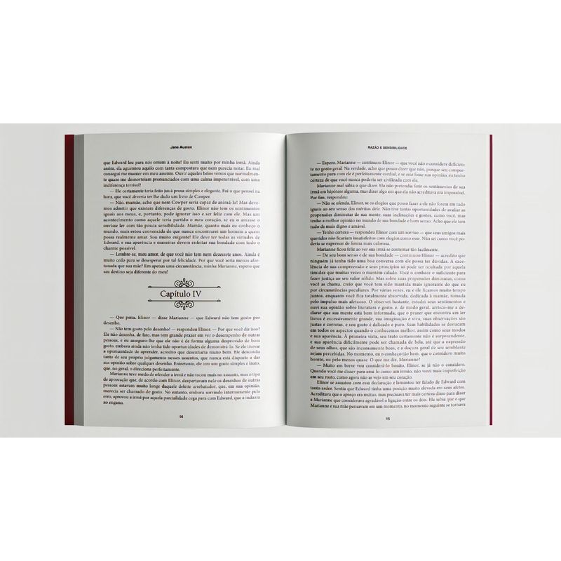 A narrativa envolvente desta obra tem seu foco nas duas irmãs Dashwood, Elinor e Marianne, cuja maneira de encarar as adversidades da vida representam uma verdadeira dualidade: enquanto Elinor é sensata e prudente, Marianne se deixa envolver pelas emoções. Ao longo da trama, as personagens vivem intensos desa os e reviravoltas enquanto tentam sobreviver em uma sociedade baseada no dinheiro e no status social. Razão e Sensibilidade, sem dúvida, gura entre os mais populares romances da literatura.