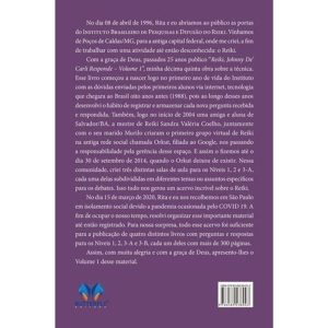 Esse livro começou a nascer logo no primeiro ano de vida do Instituto Brasileiro de Pesquisas e Difusão do Reiki, com as dúvidas enviadas pelos alunos via internet. Também, no início de 2004 uma amiga e aluna de Salvador/BA, a mestre de Reiki Sandra Valéria Coelho e seu marido Murilo criaram o primeiro grupo virtual de Reiki em redes sociais. Nesse grupo, criei três salas de aula para os Níveis 1, 2 e 3-A. Isso tudo nos gerou um acervo incrível sobre o Reiki. No dia 15 de março de 2020, Rita e eu nos recolhemos em São Paulo em isolamento social devido e para ocupar o nosso tempo, resolvi organizar esse importante material até então registrado. O acervo foi suficiente para a publicação de quatro livros com perguntas e respostas para os Níveis 1, 2, 3-A e 3-B. Assim, com muita alegria e com a graça de Deus, apresento-lhes o Volume 1 desse material.