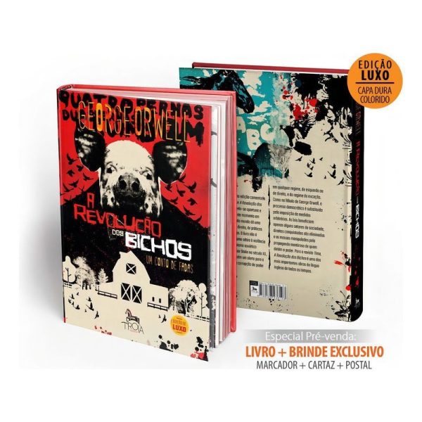 A MAIS COMPLETA E LUXUOSA EDIÇÃO DOS CLÁSSICOS MAIS RENOMADOS DO MUNDO ***BRINDE*** Acompanha Marcador de páginas, Cartão postal e Poster com os personagens do livro. – Capa Dura, Colorido, Hotstamping, bordas avermelhadas – Texto integral traduzido do original – Traduzido, apresentado e comentado pelo filósofo Claudio Blanc – Páginas com ilustrações incríveis de Nelson Provazi – Caderno de fotos que retrata a vida do autor – Cronologia com eventos na vida do autor, no mundo e no Brasil – Projeto gráfico do artista Alan Maia Relançado pela Troia Editora, A Revolução dos Bichos (1945), de George Orwell (1903-1950), sátira ao comunismo soviético do século XX, retrata o arbítrio e a desigualdade que imperam nos regimes de exceção. A história se passa na Fazenda do Solar, de seu despótico proprietário, Jones, que explora e maltrata os animais. Revoltados, os bichos se unem e expulsam o dono e assumem a gestão da fazenda, agora com o nome de Fazenda dos Bichos, sob a liderança de dois porcos rivais, Napoleão (representando Stalin) e Bola de Neve (Trótski). São editados os Sete Mandamentos da fazenda, que pregam igualdade entre os animais, mas aos poucos eles foram adulterados até serem praticamente abolidos “Os leitores modernos passaram a ver o livro de Orwell como um poderoso ataque a qualquer poder político, retórico ou militar que busca controlar os seres humanos por meio de mecanismos cruéis e injustos”, afirma o tradutor Claudio Blanc. Ele enriquece a nova edição brasileira com prefácio e notas substanciosas e didáticas, contextualizando a novela de Orwell, e uma cronologia da vida do escritor e dos principais acontecimentos no mundo e no Brasil, de 1903 a 1950. Essa nova edição tem moderno, original e arrojado projeto gráfico de Alan Maia e ilustrações de Nelson Provazi e ainda contém um extenso caderno de fotos… Segundo a revista Time, A Revolução dos Bichos é uma das mais importantes obras da língua inglesa de todos os tempos.