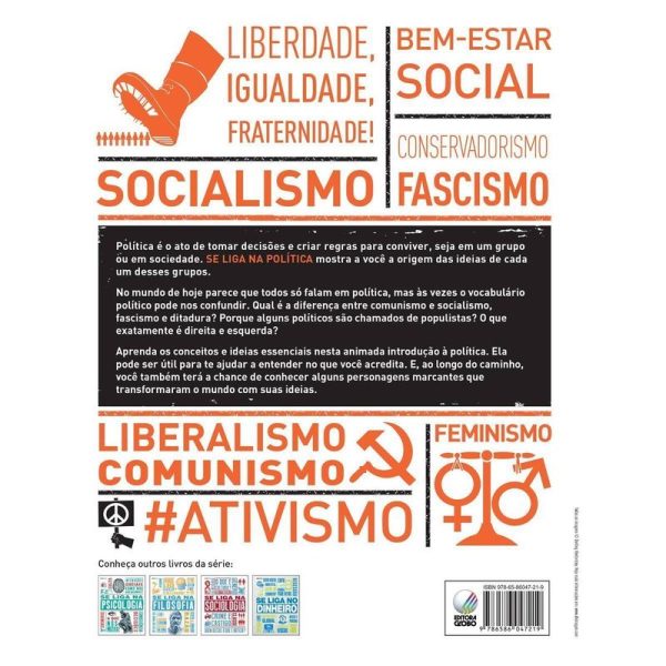 Em um dos momentos mais conturbados das últimas décadas na política mundial, este livro pretende contribuir para o debate ao responder perguntas como estas. Política é o ato de tomar decisões e criar regras para conviver, seja em um grupo ou em sociedade. Se liga na política mostra a origem das ideias de cada um desses grupos. No mundo de hoje parece que todos só falam nesse assunto, mas às vezes o vocabulário usado pode confundir. Conceitos como comunismo e socialismo, fascismo e ditadura, o porquê de alguns políticos serem chamados de populistas – depois desta leitura, ninguém mais será pego de surpresa na roda de conversas.