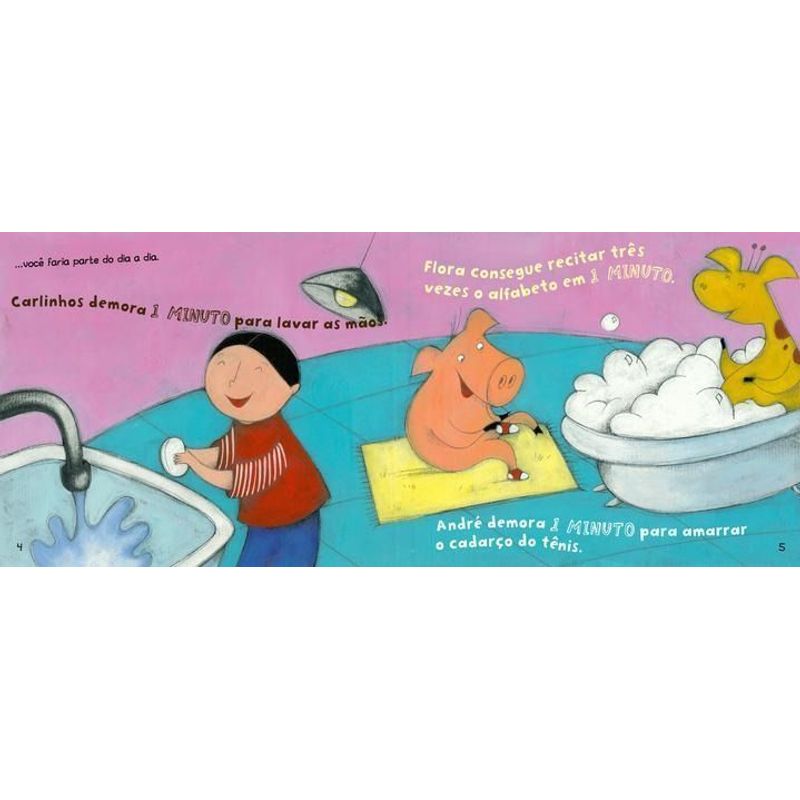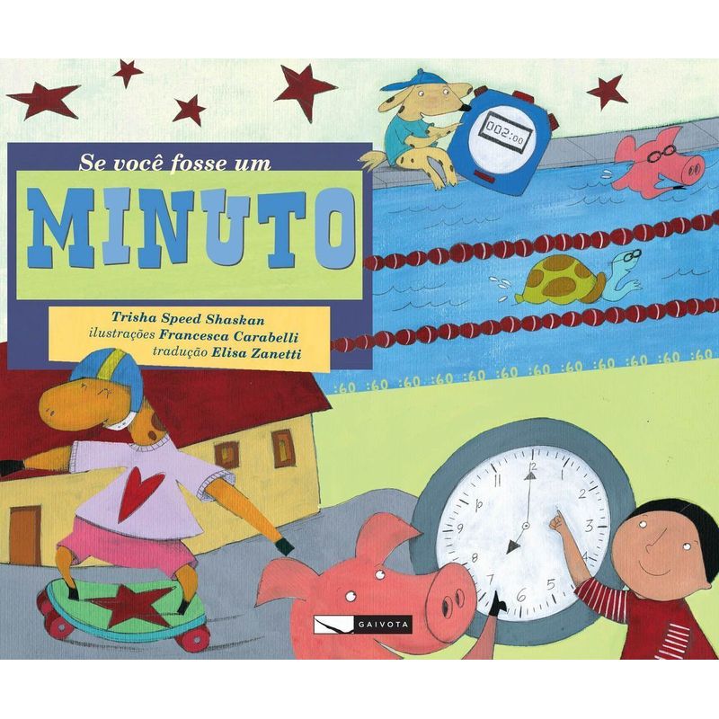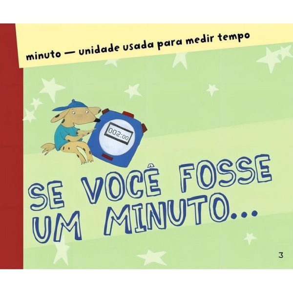 Se você fosse um minuto, você mediria tempo. Você estaria na hora de acordar as pessoas, no momento de terminar uma corrida ou no tempo de assar uma deliciosa pizza. Onde mais você poderia estar, se você fosse um minuto? O livro é ideal para o aprendizado das unidades de medida de tempo – como minuto e segundo – de uma maneira lúdica. Os personagens passam por cenas cotidianas – como a preparação de uma pizza – nas quais a matemática é inserida de forma natural. As situações avançam em complexidade gradualmente ao longo do livro, enquanto o texto explica os diferentes usos da medida do tempo. No final do livro, o pequeno leitor encontra uma página com uma atividade prática sobre o tema, para ser feita utilizando-se objetos de casa (como relógio e cronômetro), assim como um glossário.