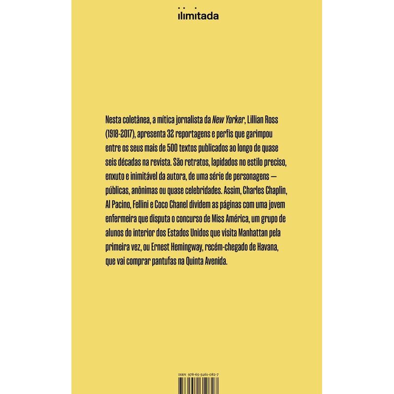 Em 32 textos, a lendária repórter da revista The New Yorker, precursora do jornalismo literário, retrata celebridades do mundo do cinema, da literatura e da moda, ao lado de personagens anônimos Ela viveu quase cem anos. Destes, trabalhou perto de seis décadas na icônica revista The New Yorker, na qual publicou mais de quinhentos textos e tornou-se uma das jornalistas mais cultuadas e admiradas no mundo. Lillian Ross (1918-2017), precursora do jornalismo literário, inovou a forma de contar histórias e fazer reportagens, com seu jeito único de apurar e, depois, descrever o que viu e ouviu. Sempre repórter – Textos da revista “The New Yorker”, foi o último livro que publicou em vida, no qual reuniu 32 daquelas que considerou suas melhores reportagens. A coletânea, editada pela primeira vez no Brasil, tem tradução de Jayme da Costa Pinto e posfácio do jornalista e editor Paulo Roberto Pires. Os textos que a autora selecionou para a antologia, confeccionados com seu estilo inimitável, retratam uma série de figuras – públicas, anônimas ou quase celebridades. Figurões como Charles Chaplin, Al Pacino, Fellini e Coco Chanel dividem as páginas com uma jovem enfermeira que disputa o concurso de Miss América, um grupo de alunos do interior dos Estados Unidos que visita Manhattan pela primeira vez, ou Ernest Hemingway, recém-chegado de Havana, que vai comprar pantufas na Quinta Avenida.