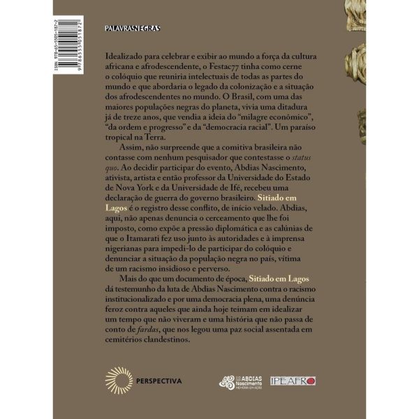 O Festac 77 foi um festival idealizado para celebrar e exibir ao mundo a força da cultura africana e afrodescendente. Ao longo de quatro semanas (de 15 de janeiro a 12 de fevereiro de 1977), expoentes negros da música, das artes plásticas, da dança e do teatro se apresentaram em Lagos, na Nigéria. O coração do festival era, no entanto, o colóquio que reuniria centenas de intelectuais de todas as partes do mundo e que, como não poderia ser diferente em plena era da independência das antigas colônias africanas, abordaria o legado da colonização e a situação dos afrodescendentes no mundo, com forte participação dos Estados Unidos e do Brasil, onde se encontravam (e ainda se encontram) as maiores comunidades negras fora da África. Mas o Brasil vivia uma ditadura já de treze anos, com toda sorte de violações dos direitos humanos, censura e impedimentos de manifestações, milhares de cidadãos exilados e onde um indivíduo poderia ser preso apenas por não estar com seu documento de identidade (principalmente se fosse negro ou pardo) e que propagava as ideias do “milagre econômico”, da “ordem e progresso” e da “democracia racial”. O paraíso tropical na Terra. Não é de surpreender, portanto, que a comitiva brasileira (a “gangue dos seis”, como a chamou Abdias) não contasse com nenhum pesquisador que contestasse o status quo. Quando Abdias Nascimento, ativista, homem de teatro (criador do Teatro Experimental do Negro) e professor da Universidade do Estado de Nova York, decidiu participar do colóquio, o governo brasileiro declarou-lhe guerra. Sitiado em Lagos é o registro dessa guerra. Abdias Nascimento não apenas denuncia o cerceamento que lhe é imposto, como expõe a pressão diplomática e as calúnias de que o Itamarati faz uso junto às autoridades e à imprensa nigerianos visando impedir que ele participasse do colóquio e denunciasse o que acontecia no Brasil, em particular a violência contra sua população negra, vítima do insidioso racismo do país.