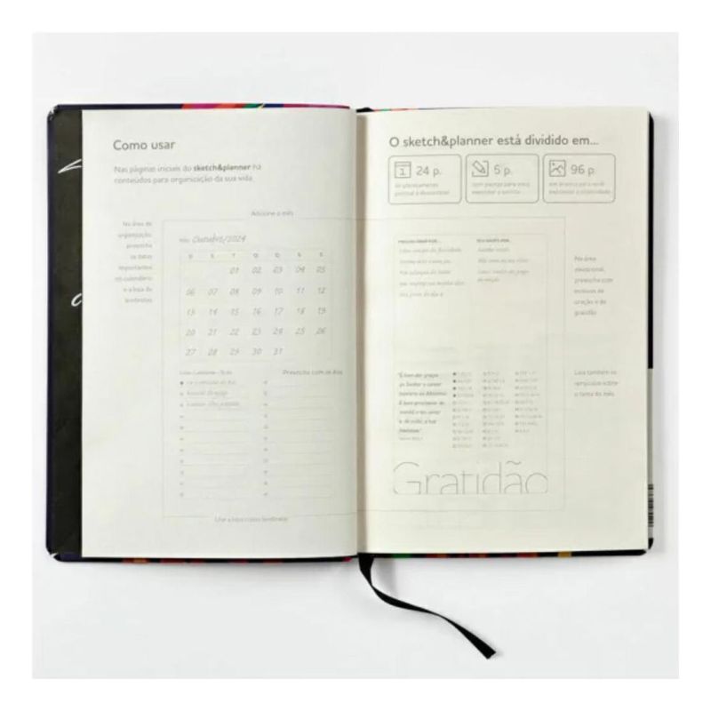 A papelaria da Sankto para sua jornada espiritual O sketch&planner é um caderno-agenda que contém calendários, lembretes e folhas para anotações e desenhos. Unindo a palavra sketch que significa esboço e a palavra planner que vem de planejamento, ele é um auxílio para expressar toda a sua criatividade, escrever seus objetivos e planejar seu mês. Este sketch&planner contém: 24 páginas de planejamento pessoal e devocional. 5 páginas com pautas para você exercitar a escrita. 96 páginas em branco para você expressar a criatividade. Cantos arredondados | Capa flexível | Fitilho
