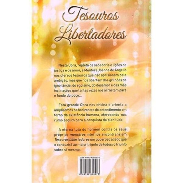 Nesta Obra, repleta de sabedoria e lições de justiça e de amor, a Mentora Joanna de Ângelis nos oferece tesouros que não aprisionam pela ambição, mas que nos libertam dos grilhões da ignorância, do egoísmo, do desamor e das más inclinações que tantas vezes nos arrastam para o fundo do poço… Esta grande Obra nos ensina e orienta a ampliarmos os horizontes do entendimento em torno da existência humana, oferecendo-nos rumo seguro para a conquista da plenitude. A eterna luta do homem contra os seus próprios monstros internos encontrará em Tesouros Libertadores um poderoso aliado que o conduzirá ao maior triunfo de todos: o triunfo sobre si mesmo.