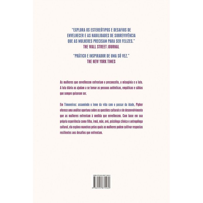 Timoneiras é voltado para mulheres que atingiram a maturidade e desejam estar no caminho autoconsciente de sua própria felicidade no decorrer da vida. Composto de entrevistas, histórias e relatos de mulheres reais que passaram por todos os tipos de desafios em sua travessia, Timoneiras: Assumindo o leme da vida é um convite para a autorreflexão. Alguns temas são um passeio: o amor, o companheirismo, as aventuras, a diversão e a amizade. Outros, são abissais: imposição dos padrões de beleza, o machismo, a solidão do envelhecimento, a doença, a morte e o luto. A autora, Mary Pipher, é psicóloga clínica, antropóloga cultural, mãe, irmã e avó e passou a vida aprendendo que os caminhos impostos pela sociedade às mulheres podem se tornar um peso: a eterna juventude, o casamento, a maternidade, a ansiedade, a depressão, a invisibilidade da velhice, a boa educação, os obstáculos e os atalhos para o que se considera viver bem. Pipher sabe que as experiências são múltiplas e únicas, que variam de acordo com a classe social, raça, origem cultural e orientação sexual, porém, acredita no poder do compartilhamento, da troca e do aprendizado em conjunto. Timoneiras: Assumindo o leme da vida com o passar da idade é o início de um novo diálogo. (…) É um guia para a boa-venturança, uma amiga que ajuda a remar em direção à vida intensa, alegre ou dolorosa, complexa e linda. Seja pelos caminhos do Cabo da Boa Esperança ou da Tormenta, Mary Pipher indica que sempre há uma bonita paisagem para apreciar.