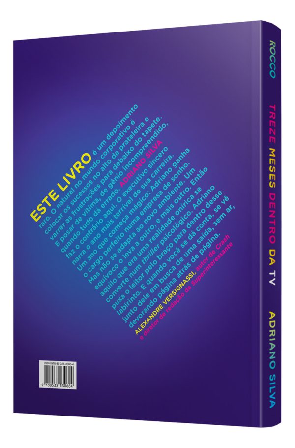 Autor da trilogia O Executivo Sincero, Adriano Silva revela, em Treze meses dentro da TV, os bastidores da sua passagem por um dos programas mais importantes da televisão brasileira, ao mesmo tempo que reflete, sem romantismo e com muita franqueza, sobre os erros e acertos vividos dentro da maior empresa de comunicação do Brasil, como chefe de redação do Fantástico. Revendo essa trajetória de apenas 13 meses, mas de muito aprendizado, Adriano compartilha com o leitor desde o entusiasmo diante da oportunidade que se apresentou como o cargo perfeito na empresa dos sonhos, passando pelos equívocos sucessivos que indicavam que algo não ia bem até a certeza definitiva de que aquele não era o seu lugar. Na contramão da maioria das histórias sobre carreira e vida corporativa, em que as frustrações e os percalços são sempre varridos para debaixo do tapete, este é um depoimento raro e uma aventura executiva cheia de descobertas, aprendizagens e espantos.