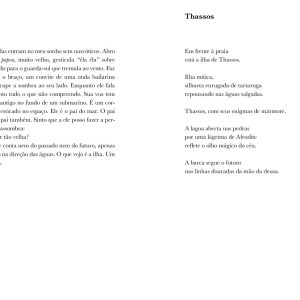 Um Quarto em Cavala é, antes de tudo, uma reflexão sobre o paradoxo da existência. Vita, conduzida por uma força que mal compreende, atravessa fronteiras para confrontar o vazio. Sua viagem não é apenas um deslocamento físico; é uma renúncia à segurança de uma vida definida por limites invisíveis, uma busca pela sua essência. O quarto em Cavala não é refúgio nem prisão, mas um lugar suspenso, onde o passado e o presente se entrelaçam, fazendo surgir a experiência poética. A viagem de Vita, mais do que física, é uma jornada filosófica e criativa. O espaço exterior — Cavala, com suas paisagens e mitos — espelha o mergulho interior em um mar simbólico de memórias, medos e possibilidades. E também o encontro com outras linguagens. A narrativa propõe uma reflexão profunda sobre os caminhos que se bifurcam entre a solidão e o pertencimento, entre a voz interna e os ecos de mulheres artistas e mitológicas que, ao longo do tempo, deixaram suas marcas. Vita, ao se encontrar com essas vozes, descobre que sua travessia não é apenas uma fuga, mas um rito de iniciação. A escrita é seu território de ancoragem e também o vento que a leva, num constante movimento entre perder-se e recriar-se. Em Um Quarto em Cavala, a viagem é apresentada como uma condição inevitável da existência humana, na qual a verdadeira liberdade só é alcançada ao aceitar-se como parte do mistério.