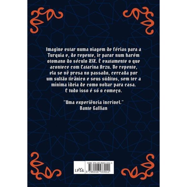 O que você faria se acabasse presa no harém de um poderoso sultão? Numa viagem para explorar as raízes de sua família, a historiadora Catarina Arzu chega a Istambul com um itinerário pronto para visitar tudo: mesquitas, palácios, museus e monumentos que pertencem à cidade milenar. Mas o que ela não esperava era acabar visitando também outro século. Durante o tour no principal palácio da cidade, que foi a capital de um dos grandes impérios da História, Catarina, misteriosamente, se vê presa num harém no fim do século XIX, entre inúmeros escravizados, servas e mulheres do sultão, e com apenas seu conhecimento histórico como arma para conseguir sobreviver e até, quem sabe, voltar para casa. Em meio às intrigas, disputas e à hierarquia do harém, às riquezas do Império Otomano e aos costumes e à língua completamente estranhos a ela, Catarina tenta desvendar os mistérios do que lhe aconteceu e entender se aquilo já teria ocorrido a mais alguém. Sua vida como Arzu no passado a faz relembrar e repensar sua vida livre, mas repleta de inseguranças a respeito de si mesma no Rio de Janeiro do século XXI, afinal, “depois de cruzar aquela porta, mulher alguma seria a mesma novamente”.