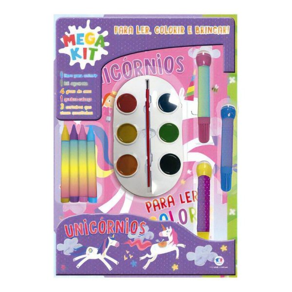 Chegou a hora de se encantar com os unicórnios mágicos! Divirta-se com um livro para ler e colorir, gizes de cera, um estojo de aquarela com seis cores, canetinhas com carimbos acoplados e um quebra-cabeça para recortar e brincar!
