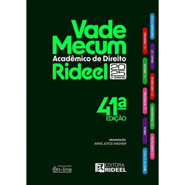 O Vade Mecum Acadêmico de Direito Rideel – 2025.2 chega à 41ª edição com uma trajetória de sucesso e milhares de impressões vendidas, sendo, desta forma, o coadjuvante na vitória de concurseiros, oabeiros e profissionais. Além de possuir o maior conteúdo impresso do mercado, proporciona aos profissionais, aos estudantes de Direito e aos concurseiros acesso fácil e simplificado à vasta quantidade de normas do nosso ordenamento jurídico. A obra apresenta a Constituição Federal, principais Códigos, Legislação Complementar Geral, Legislação de Direito Previdenciário, Legislação de Direito Administrativo, Legislação de Direito Financeiro, Legislação de Direito Ambiental, Legislação de Direito Internacional, Regimentos Internos do STF e do STJ. Praticidade e Facilidade na hora da prova, nesta edição: Exposições de Motivos, Precedentes e Enunciados vem separado! Nas Leis que são conhecidas pelo “nome”, adicionamos no cabeço para que facilite ainda mais a sua localização! Com isso, conseguimos ter uma familiaridade maior com o diploma normativo em questão! Ainda, visando agilizar a localização do conteúdo buscado, há os índices sistemáticos e alfabético-remissivos. Importante destacar que, para facilitar ainda mais a consulta do leitor, a capa traz um guia referencial de pesquisa. Assim, basta verificar nela a cor da seção que deseja consultar e localizá-la nas tarjas laterais da obra.