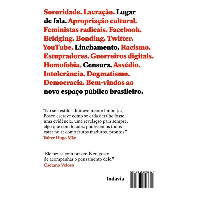 Sororidade. Lacração. Lugar de fala. Apropriação cultural. Feministas radicais. Facebook. Bridging. Bonding. Twitter. YouTube. Linchamento. Racismo. Estrupadores. Guerreiros digitais. Homofobia. Censura. Assédio. Intolerância. Dogmatismo. Democracia. Bem-vindos ao novo espaço público brasileiro.